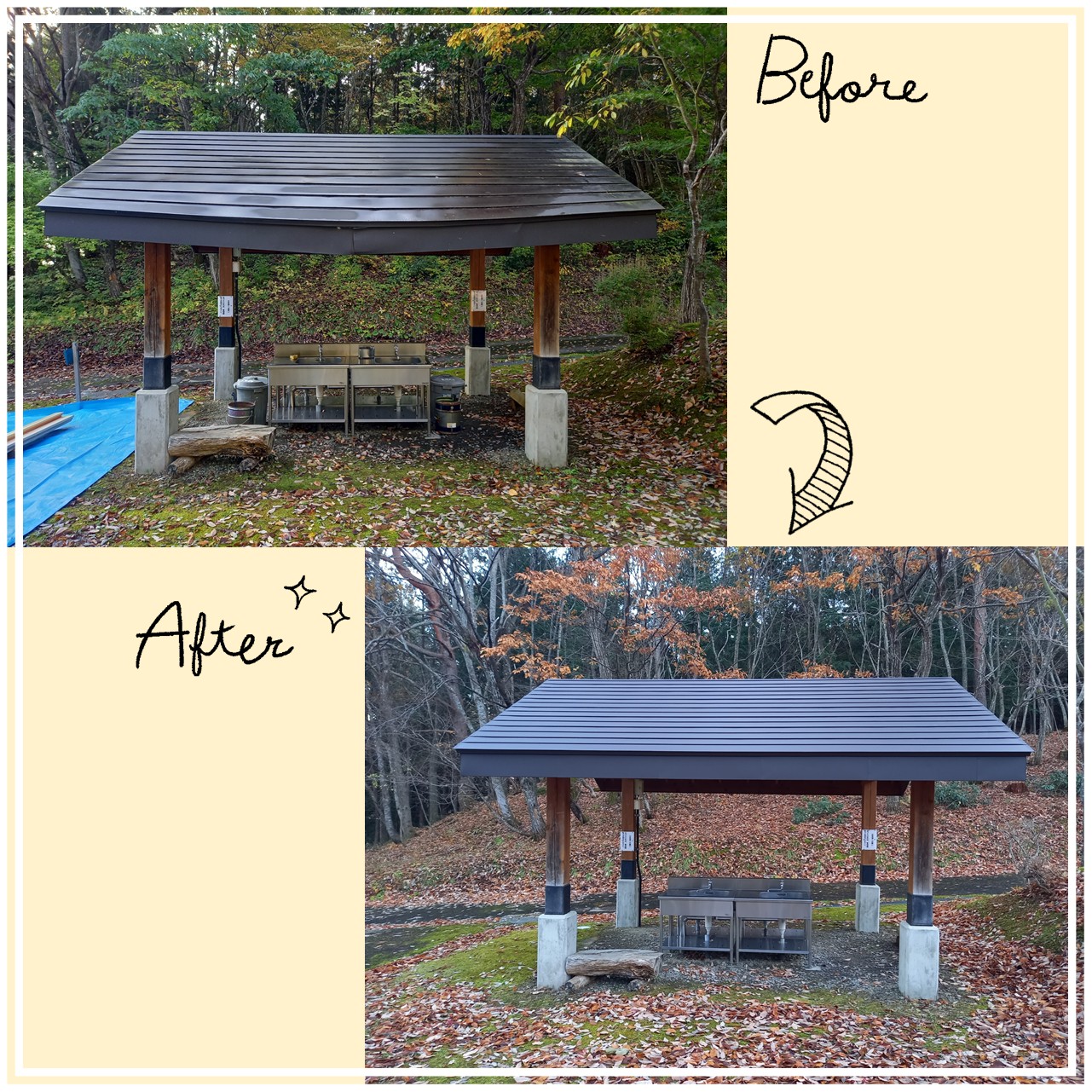 先日お伝えしていた、ウサギの森の建物の屋根修繕工事 が無事に完了しました。