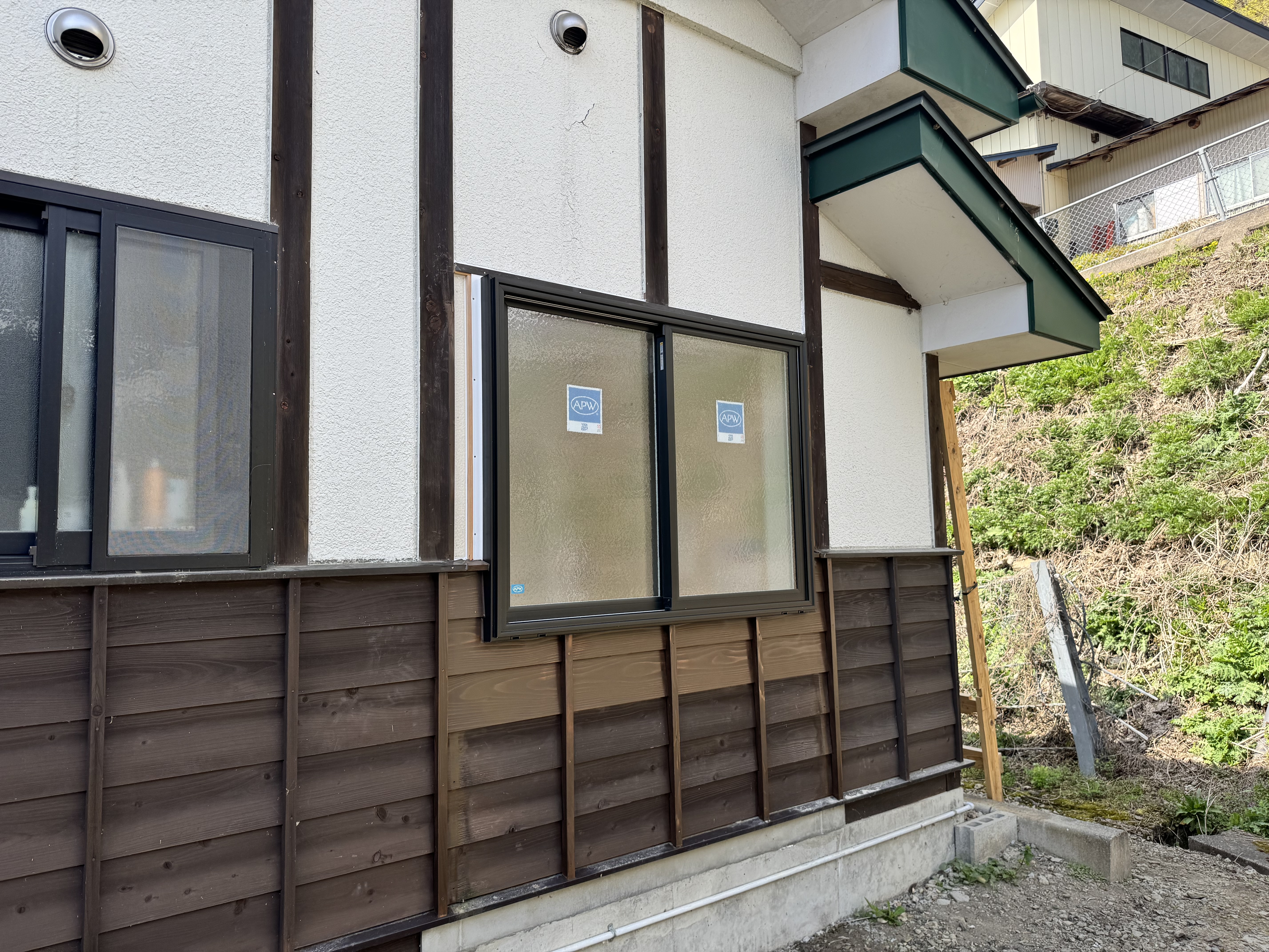 今回の現場では、既存の古い窓を撤去し、高断熱なサッシへと交換しました。 ただ交換するだけでなく、窓周りの気密処理や防水処理を徹底的に行います。📐❄️